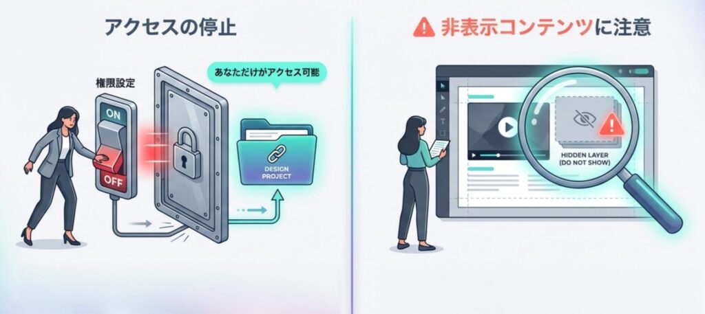非表示コンテンツを含むデザインを共有した場合