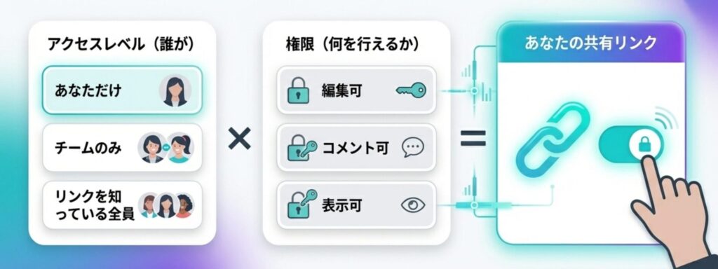 この記事では、共有前の確認事項から用途別のリンク4パターン