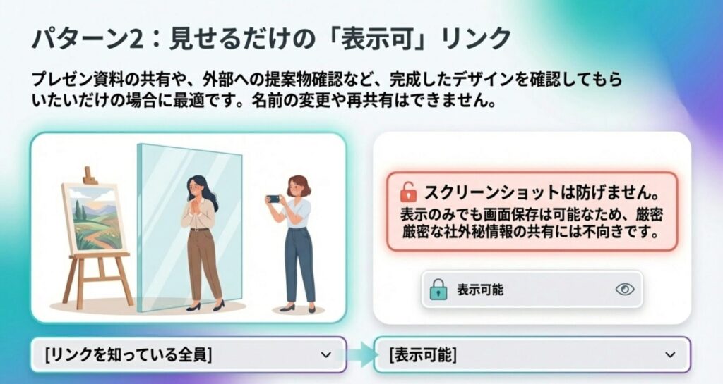 共有する方法として「表示可」を使うのは適切とはいえません。