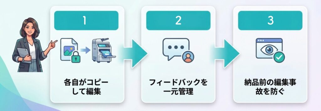 「誰かが触って壊した」「古いバージョンが混在した」というトラブルを防げます。