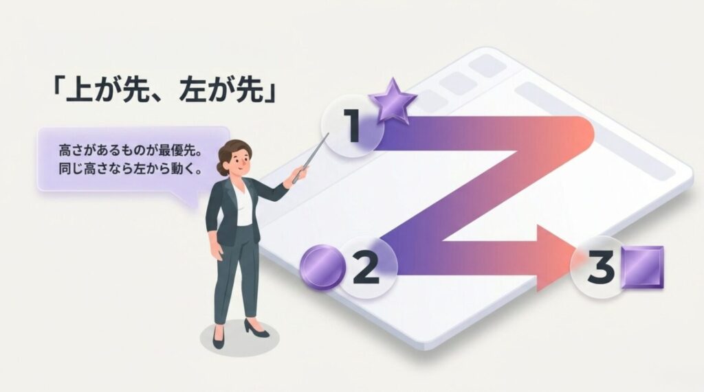Canvaでは、素材の配置位置(上下の高さ)によって