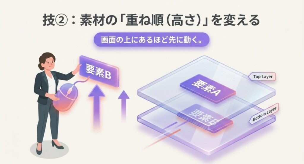 【テクニック2】素材のレイヤー順(重ね順)を変更する