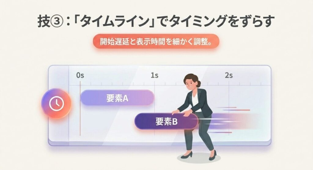 【テクニック3】アニメーションの開始遅延と持続時間を設定する
