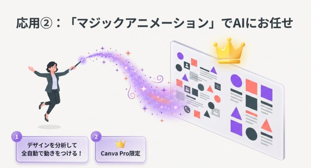 マジックアニメーションは、AIがデザインの内容を分析して、