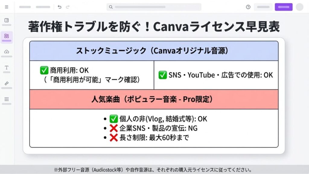 Canvaの音楽素材は商用利用できる?(無料版 vs Pro版)