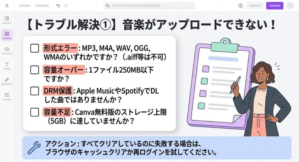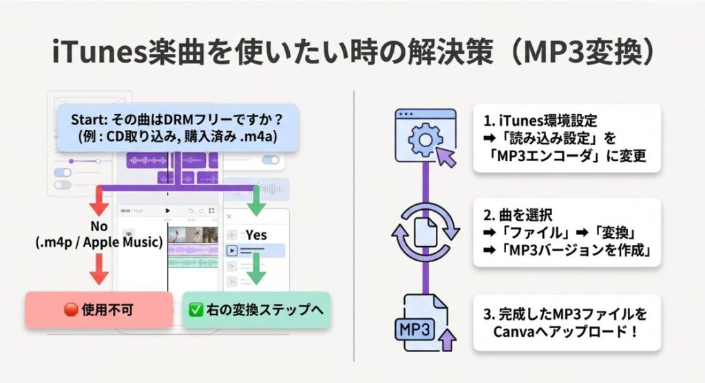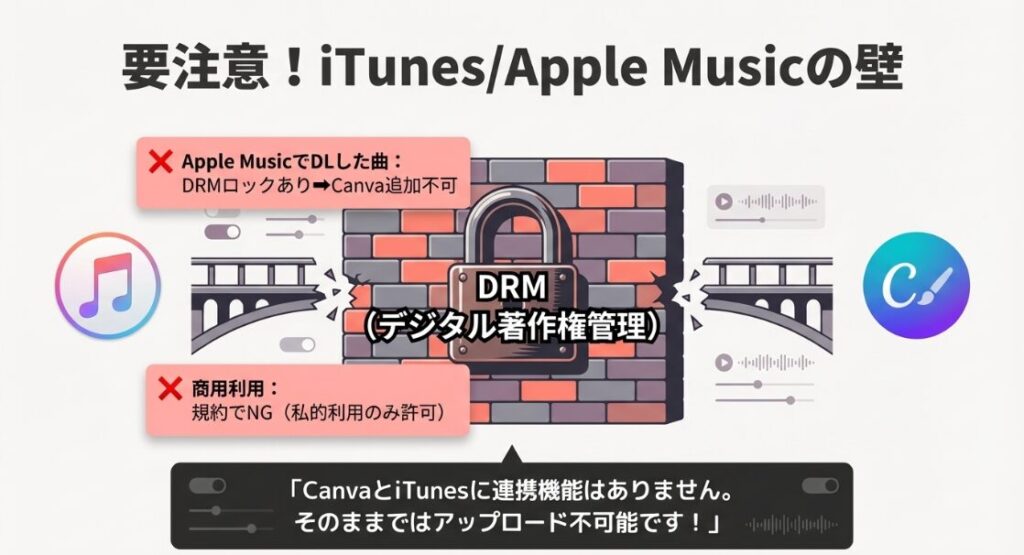 なぜiTunesの曲はそのままCanvaにアップロードできないのか?