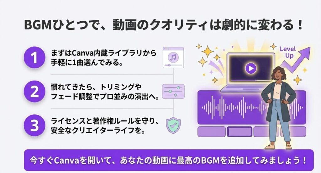 まとめ|Canvaで音楽を使いこなして魅力的な動画を作ろう