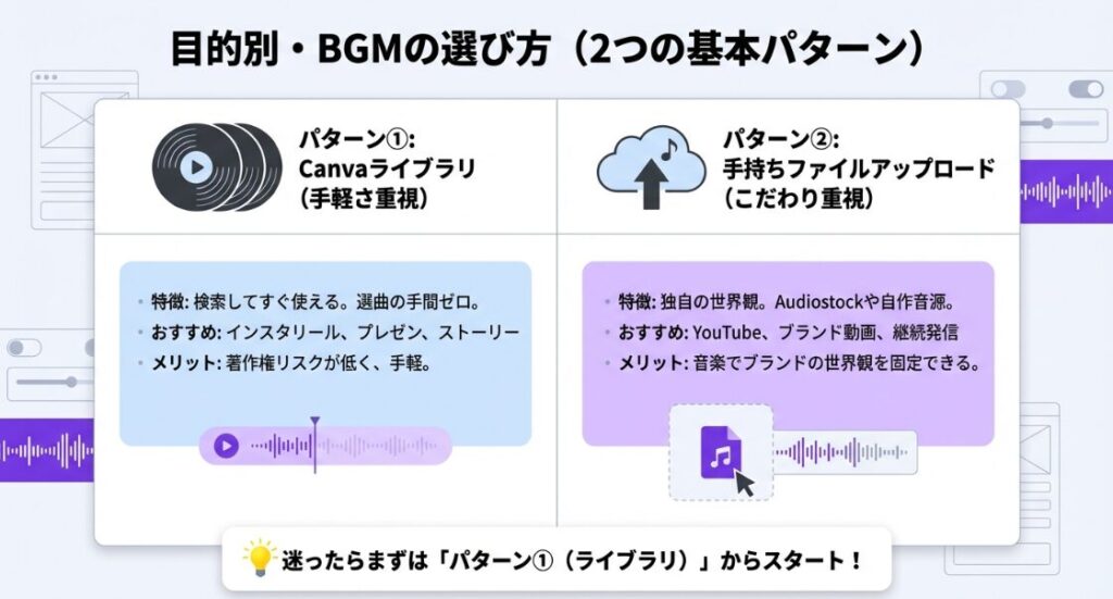 Canvaで音楽を入れる2つの基本パターン|どっちの方法が最適?