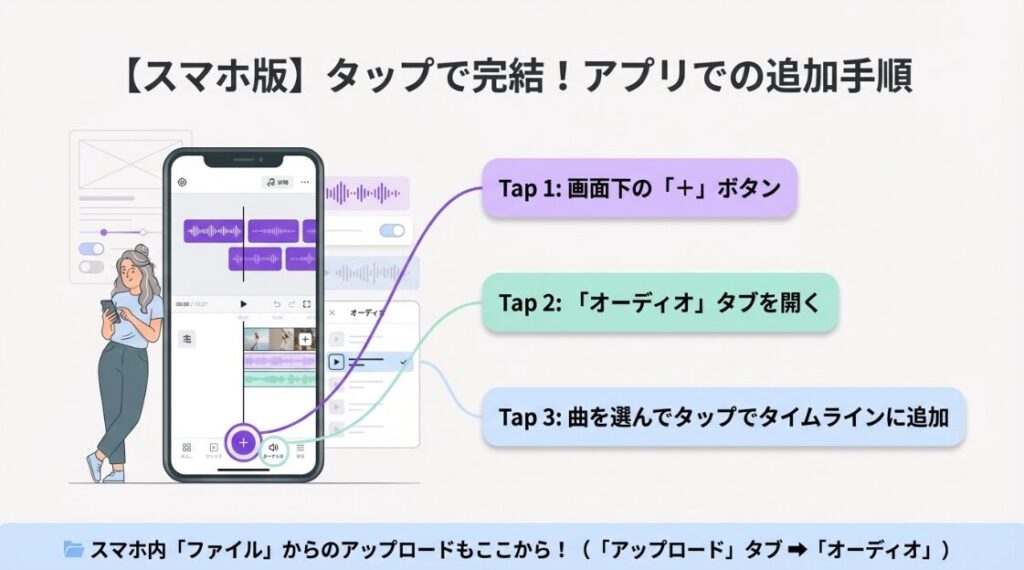 パターン②:自分の音楽ファイルをアップロードして使う(こだわり重視)