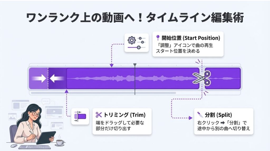3. タイムラインを使ったBGMの配置と長さ調整