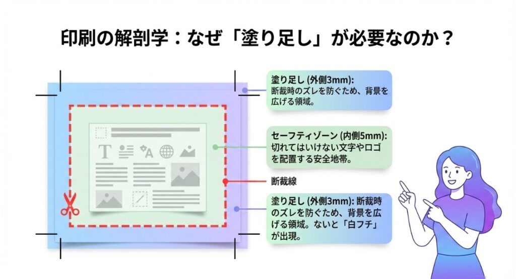 印刷後の断裁時に最大3mmのズレが生じることがあるため、