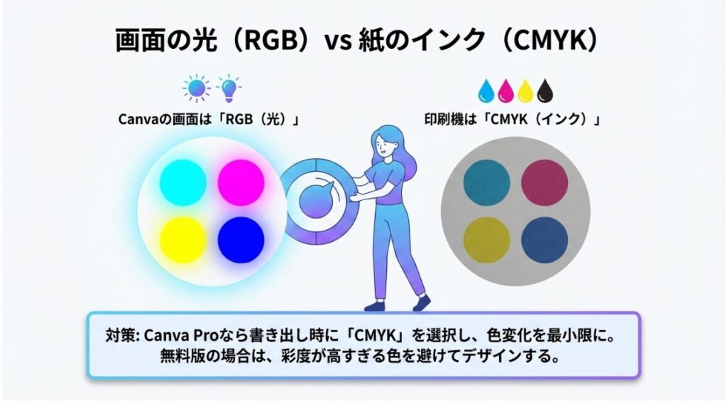 Canvaのカラーモード(RGB/CMYK)選択と色の見え方の違い