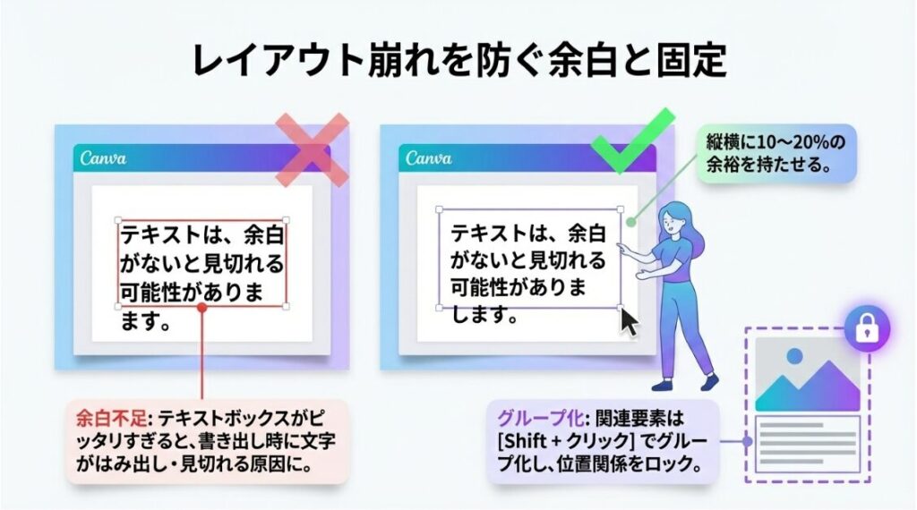 Canva画面での「セーフティゾーン」と文字切れの最終チェック