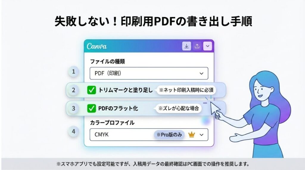 ※CMYKはCanva Proのみ - PDFのフラット化