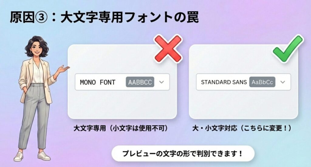 使用中のフォントが大文字専用の場合、