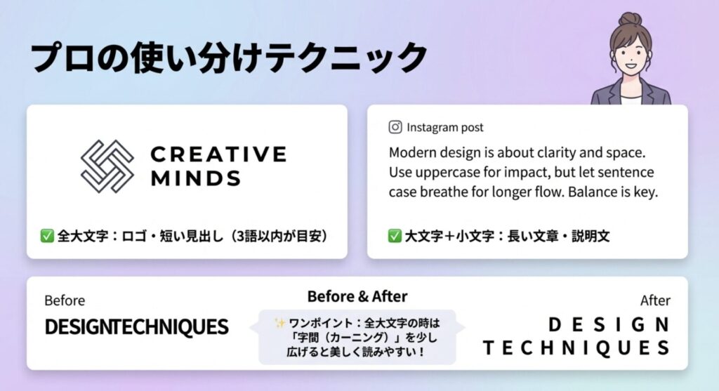 大文字と小文字を効果的に使い分けることで、