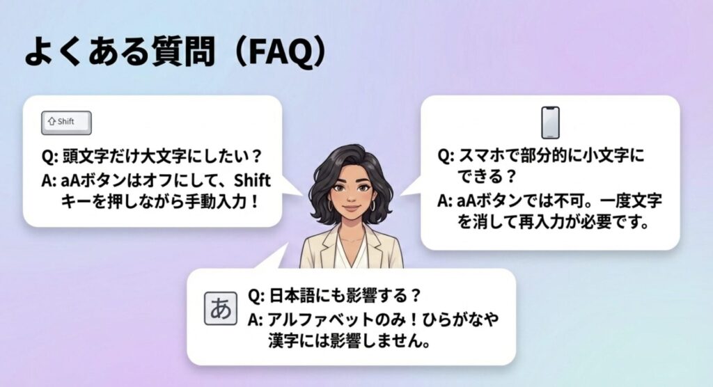 頭文字だけ大文字にするような部分的な変更はaAボタンでは対応できません。
