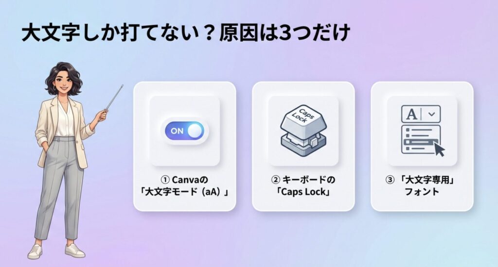 Canvaで大文字しか打てない3つの原因
