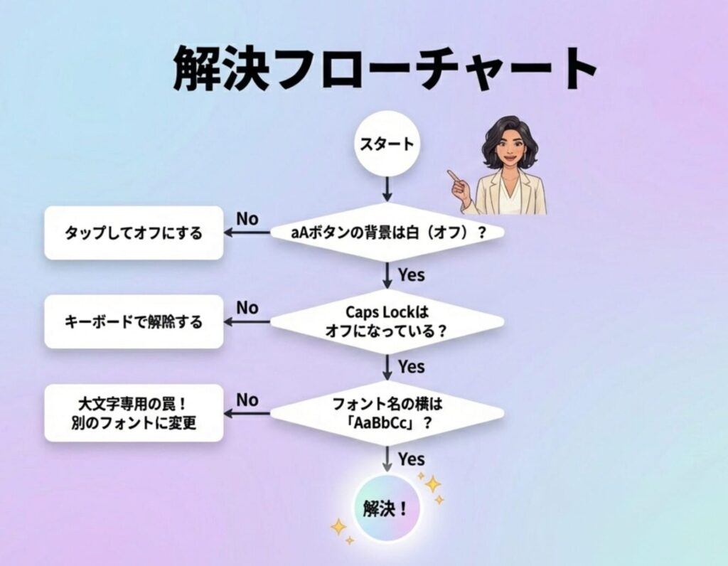 aAボタンをオフにしても小文字に切り替わらない場合、