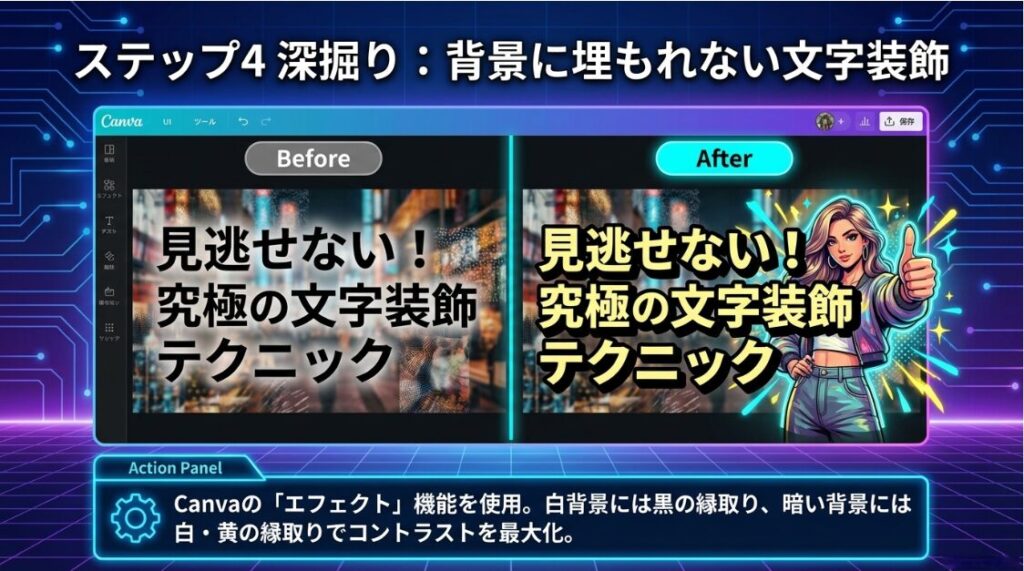 4. Canvaのエフェクト機能で文字を縁取り・装飾する
