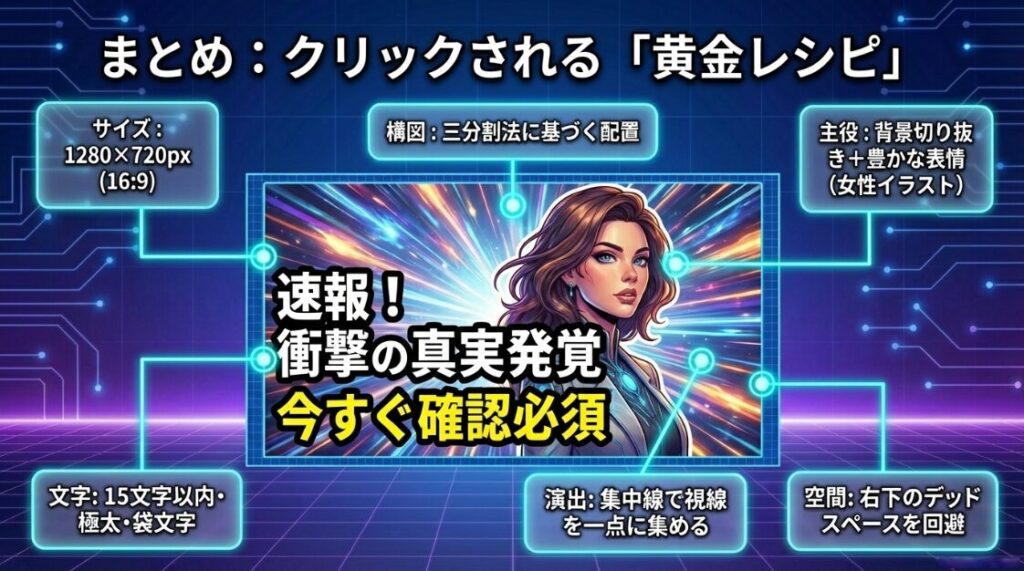 実際の動画内容に沿ったサムネイルを作成してください。
