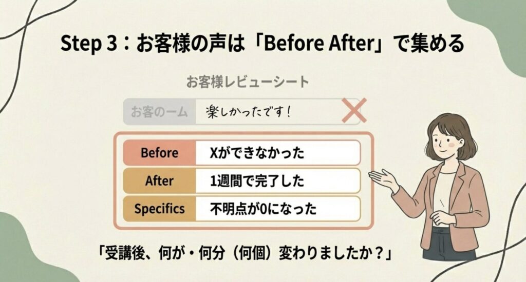 「良かった」という感想ではなく「Before After」を見つけていきましょう。