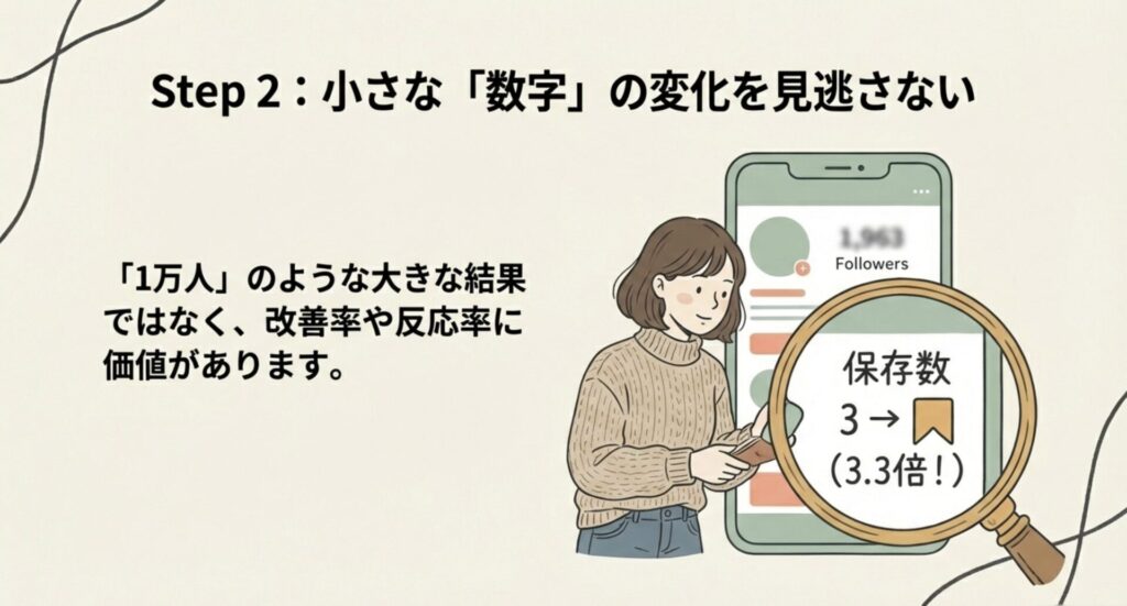 「投稿の保存数が3件から10件に増えた(約3.3倍)」