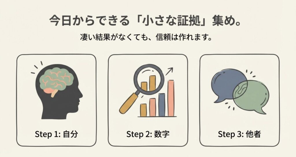 身の回りの小さな変化でも、リアリティが出るなら実績にしていきましょう。